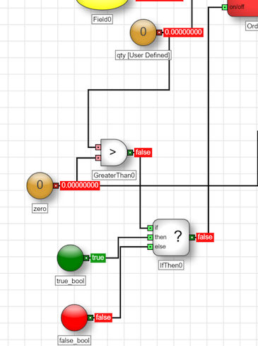 子注文を発注させるには、0 より大きい値のみが True ブール値をトリガーするという条件も作成されます。以下の IfThen0 ブロックは、0 > 0のときに True になり、それ以外は False になります。つまり、「qty」 という名前の Number ブロックの中で値が 0 以上の場合、子注文の配置の条件が True になります。「Qty」 の Number ブロックがユーザー定義であることが重要で、TTの Autotrader にユーザー定義変数として値を入れることができます。