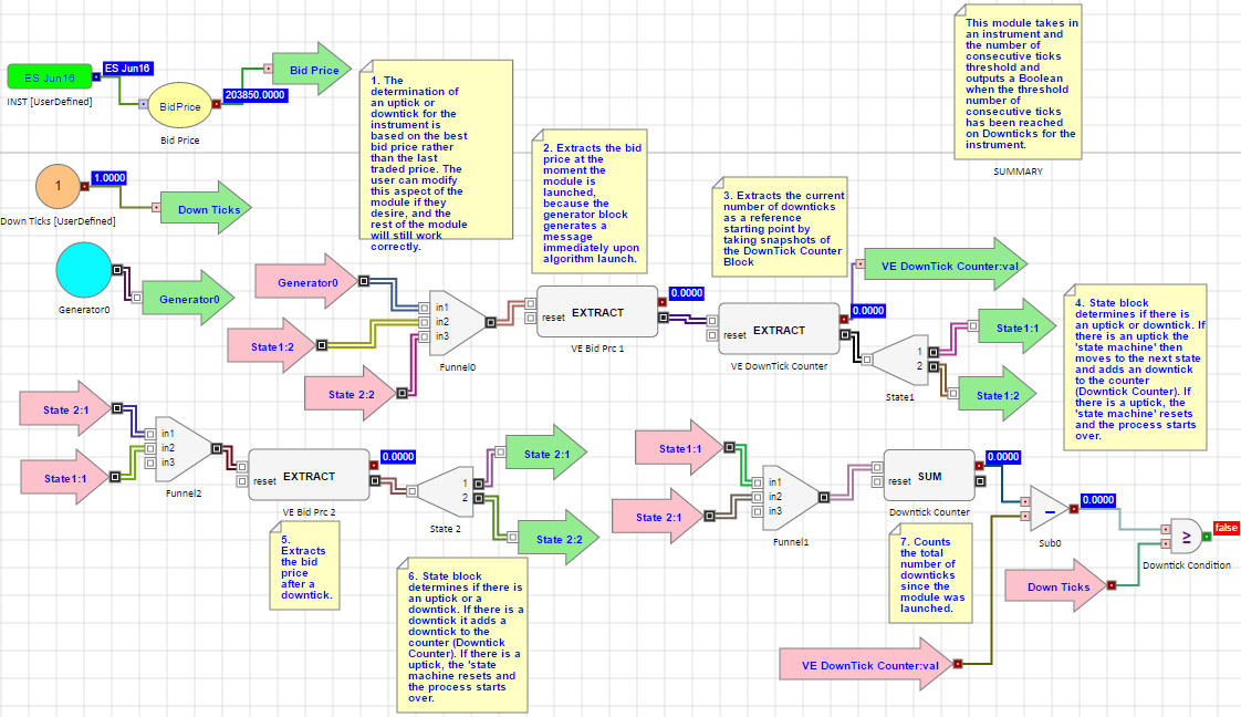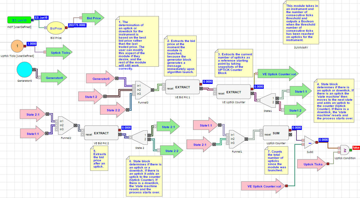 このトピックは、ADL を使って特定の限月を取り、その限月の買値を撤回します。そしてユーザー定義の上ティック・下ティック変数を使い、マーケット データを監視するカウンターを作成します。そして市場のユーザー定義の上ティック数や下ティック数が達すると、「TRUE」ブール値を出力します、これはアルゴ ロジック内でトリガー条件として使用できます。
