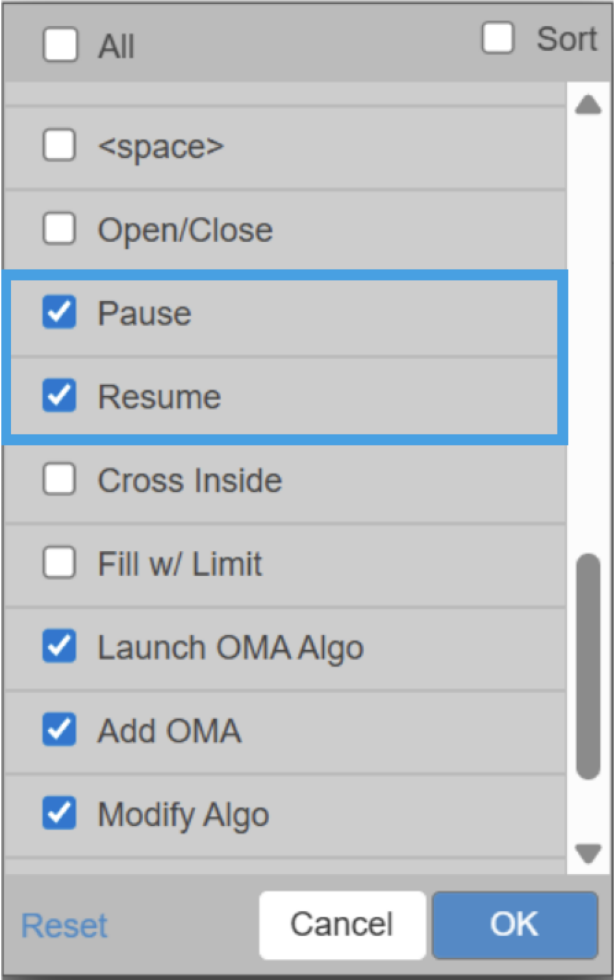 To pause an algo order, select the parent order and click the Pause button