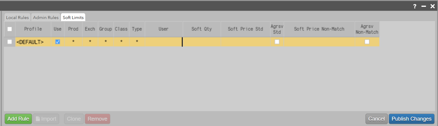 Soft limits are configurable in the Soft Limits tab in the Order Profiles widget. Users can set soft limits on the “Default” order profile or on order profiles that were created.