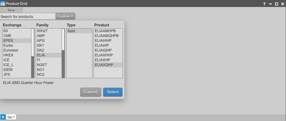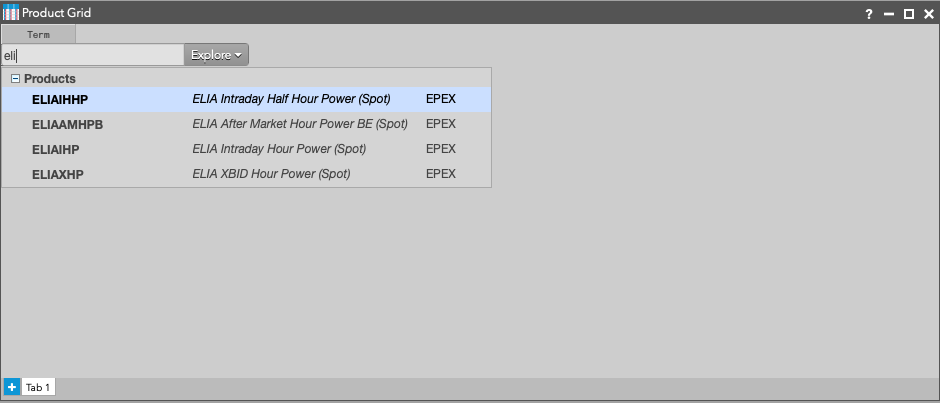 In the Search box, type the name of the product you wish to add or use the Explore button to drill down to the desired product by selecting the Exchange, Family, Type, then Product.