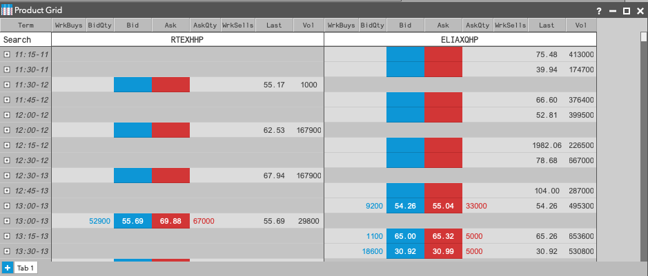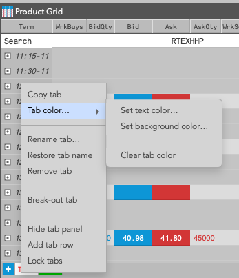 You can add tabs to the Product Grid to allow you to monitor and trade different products within the same widget. Tabs applied to the group operate independently of each other.
