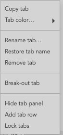 - To rename a tab, select Rename tab from the tab's context menu, and specify the new name.
