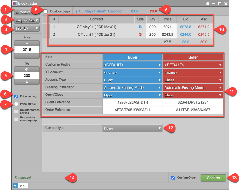 TT では、すべての Euronext 限月と取引所のホールセール注文を発注でき、1つの Blocktrader ウィジェットを使ってラージ イン スケール注文を発注できます。注文は1つの側の注文として、また両側の注文、複数レッグの取引として発注できます。