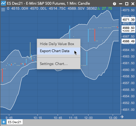 - [Chart] を右クリックして、コンテキスト メニューから [Export Chart Data] (チャート データのエクスポート) を選択します。
