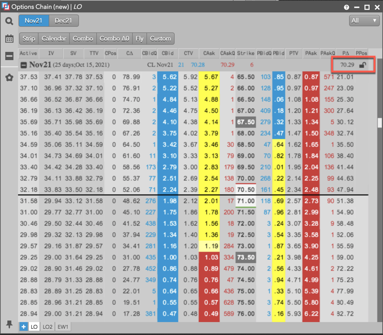 オレンジの表示は、[Options Chain] がこの価格でロックされていることを示しています。