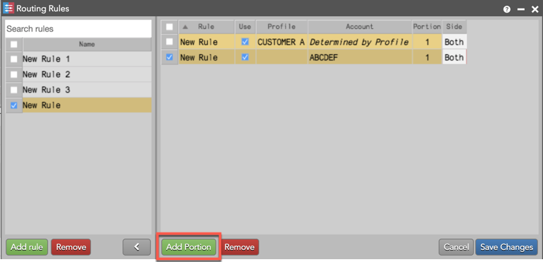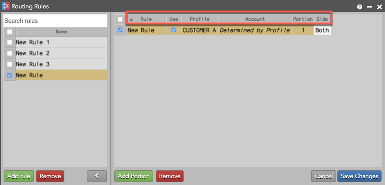 注: ルーティング ルールに定義された各注文部分に対し、注文プロファイルや口座は必須となります。注文が選択されると、全てのプロファイル設定が注文部分に適用されます。