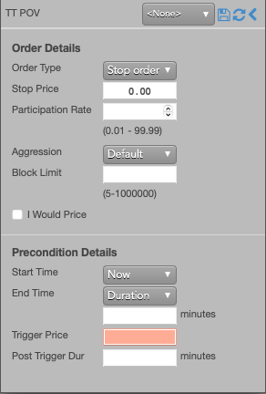 TT POV (Percentage of Volume ) プレミアム注文タイプは、定義した参加率を目指して、リアルタイムの市場出来高を追跡してそれに反応します。