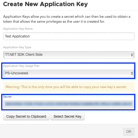 他のアプリケーション キーは TT Uncovered と作動しません。アプリケーション キーの取得と設定の詳細については、TT .NET SDK ヘルプの TT .NET SDK アプリケーションの認証 を参照してください。