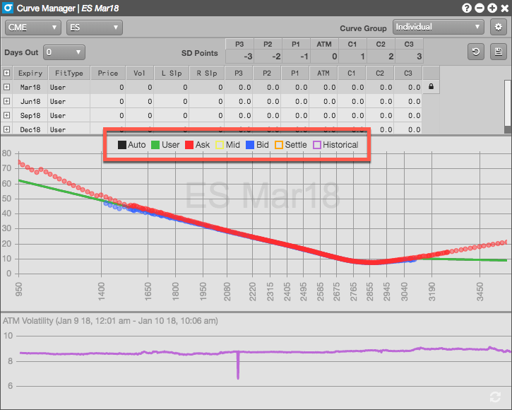 選択した銘柄の利用可能な限月が表示され、既定のカーブは最も近い満期日のものが表示されます。