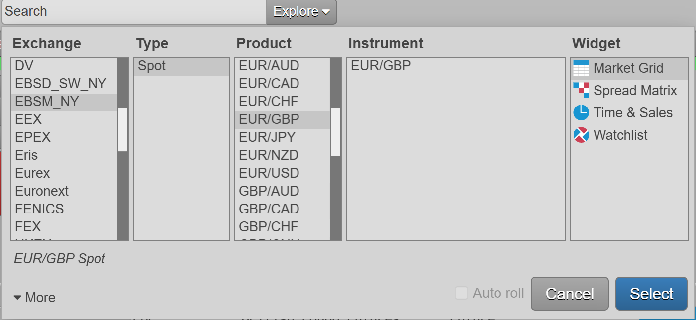 You can use Search or Market Explorer to add instruments to a new or existing Market Grid widget.