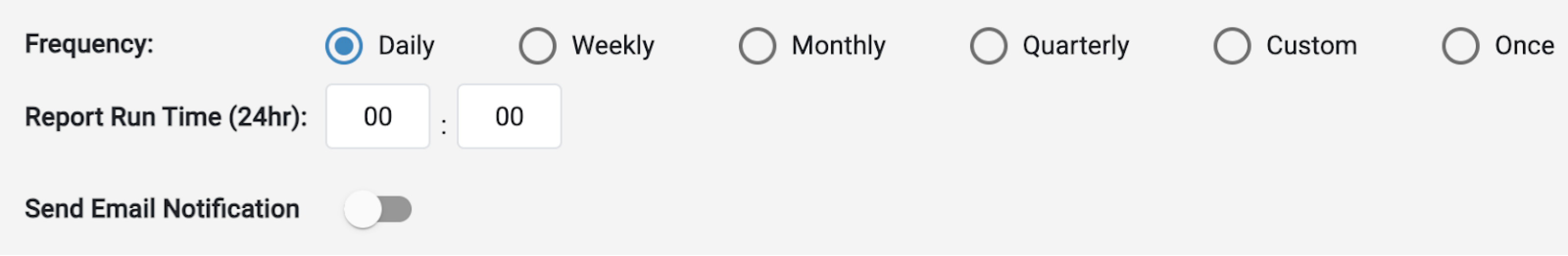 The Report Scheduler, found on the Reports tab, allows you to automatically generate reports in CSV format that run on a user-defined schedule.