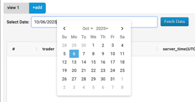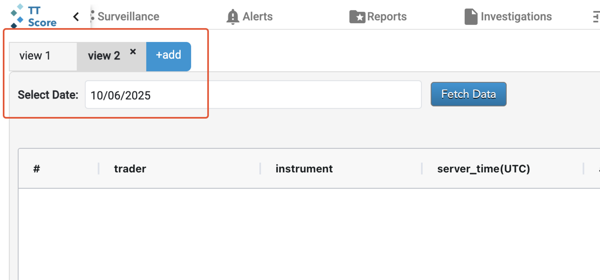 Each tab displays data for one date. You can open multiple tabs simultaneously to display data for different dates by selecting the +add button in the upper-left corner of the screen. This opens a new tab where you can select a new date to view.