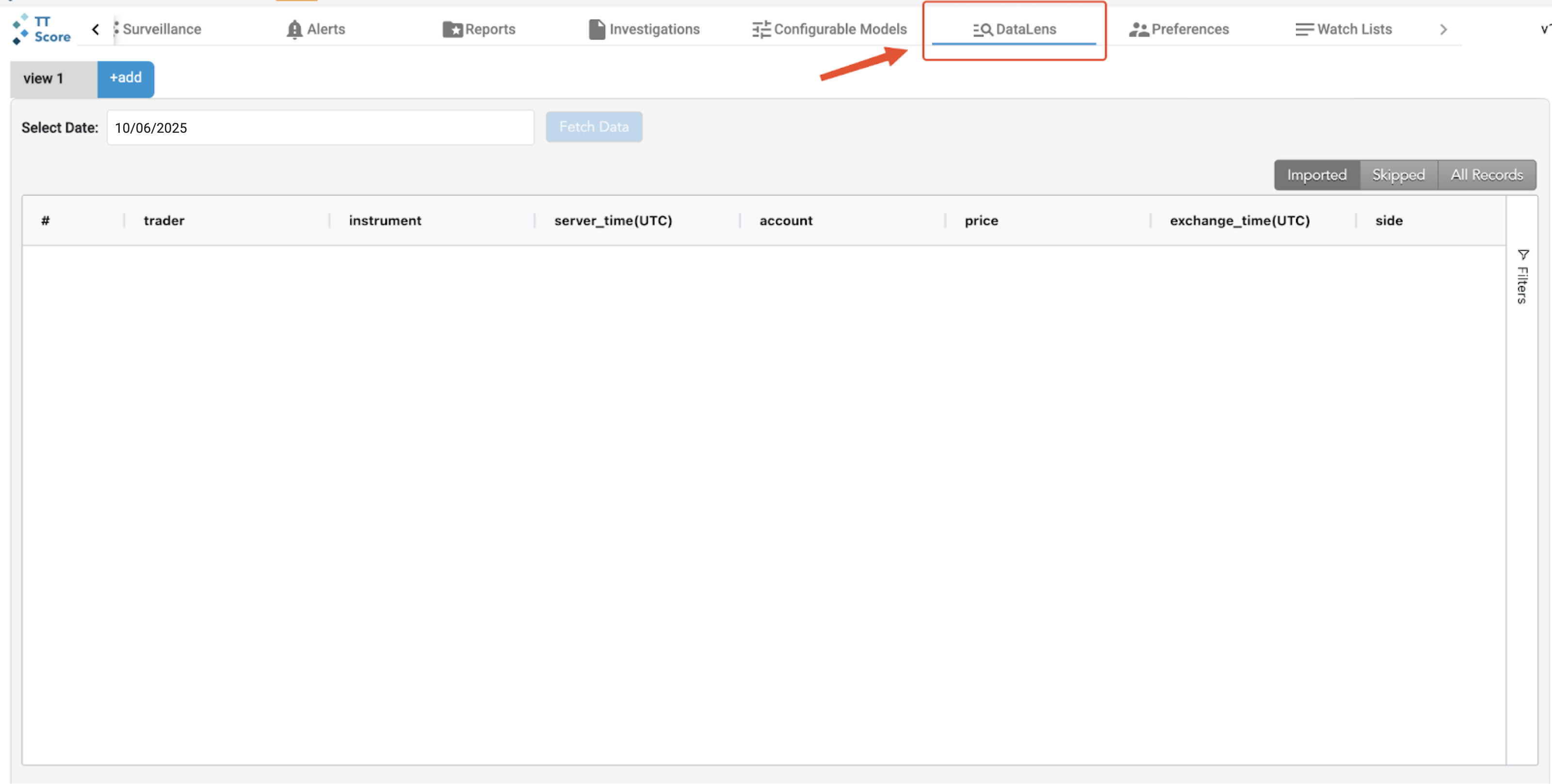 TT Trade Surveillance DataLens allows you to interact with your data directly using filter, search, and query functions. You can select a specific date and review all corresponding transactions. This provides a streamlined method to locate specific transactions and facilitates rapid investigations.