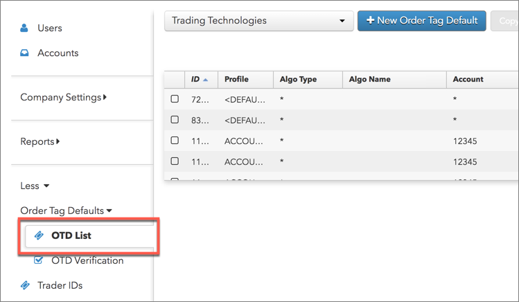 - 左ナビゲーション画面の [More] - [Order Tag Defaults] - [OTD List] タブをクリックします。