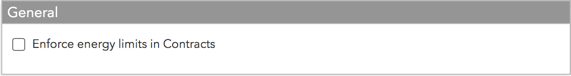 Enforce energy limits in Contracts (限月でのエネルギー限度の実施): エネルギー銘柄のフローの代わりに、限月に基づいてリスク限度を計算します。このチェックがオフの場合は、リスクはフローにて計算されます。フローでの取引のリスク計算を参照してください。