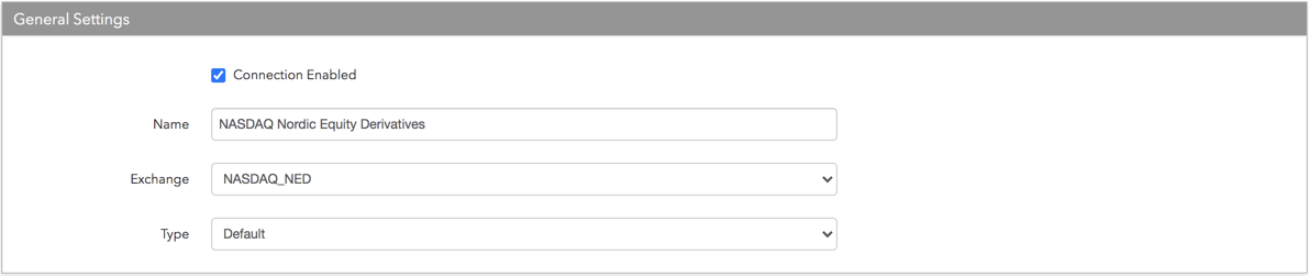 - Exchange: [NASDAQ_NED] を選択します。1接続に1取引所のみ設定できます。