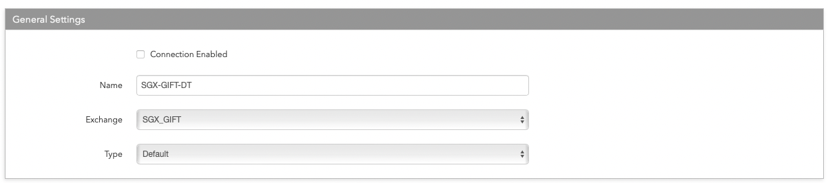 接続ごとに以下の SGX GIFT City 取引所設定を行います。
